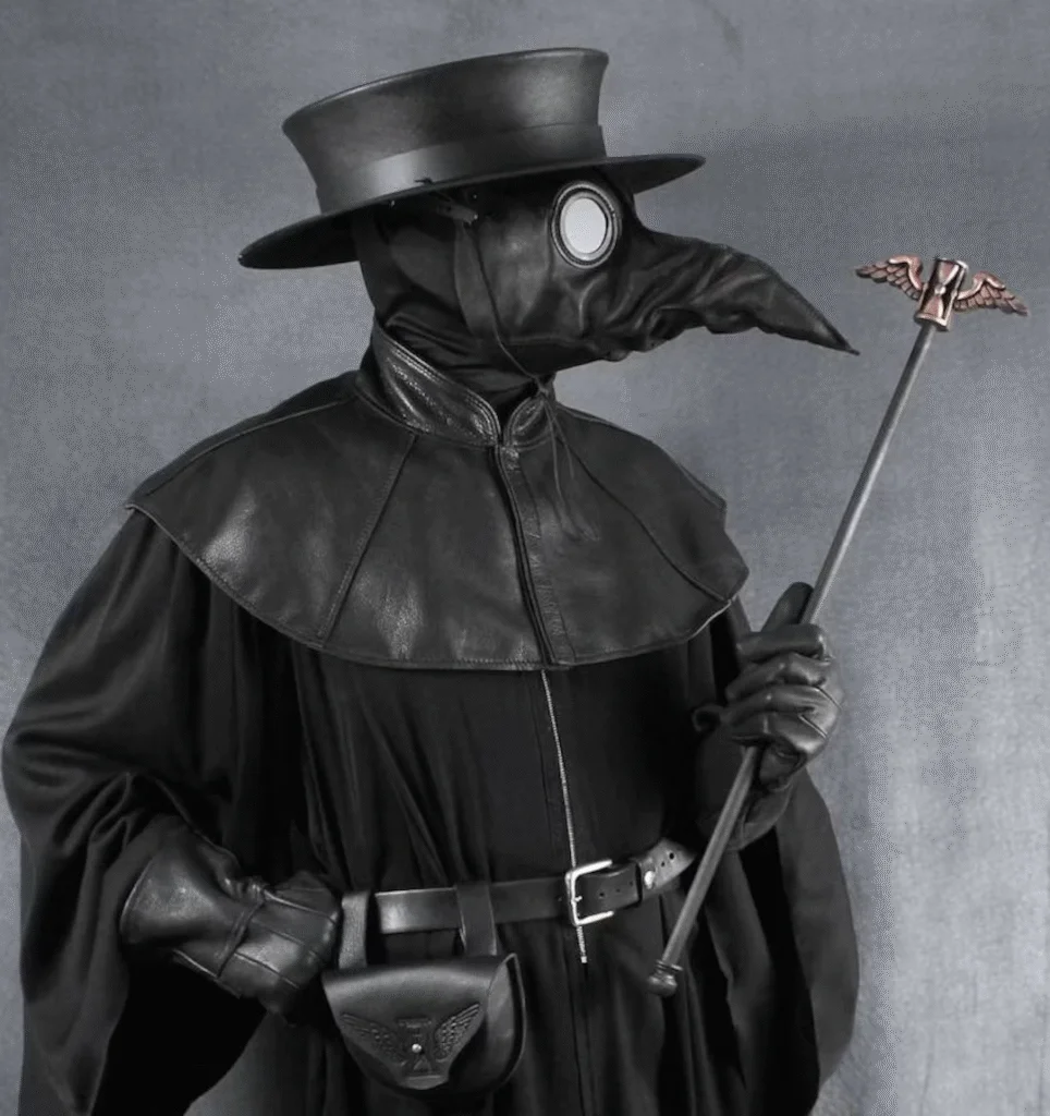 Few historical figures look as unsettling as a plague doctor. The long-beaked mask, dark cloak, and leather gloves create a silhouette that feels timelessly sinister. It’s a brilliant option if you want something that isn’t from a film but still has an instant, recognisable creep factor.