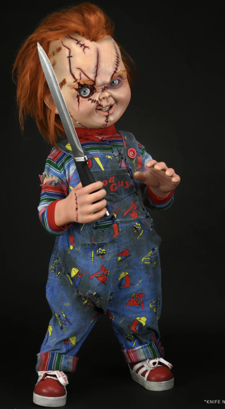 For this reason, this replica is perfect for fans of the Child’s Play and Chucky franchises. Additionally, it adds strong display presence, making it ideal for personal collections, themed rooms, or horror setups. Above all, the figure makes an excellent gift for horror lovers who appreciate detailed and screen-accurate collectibles.